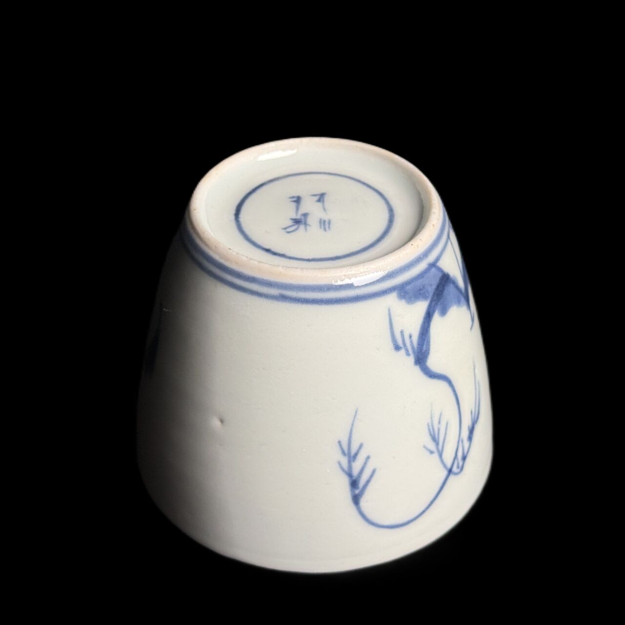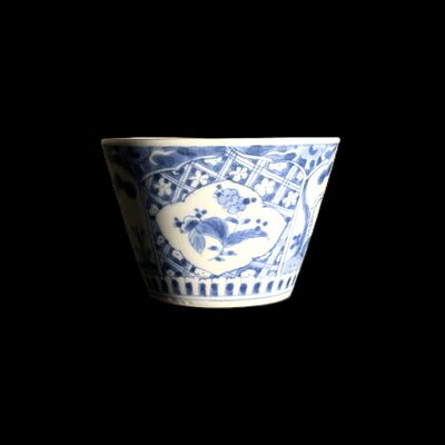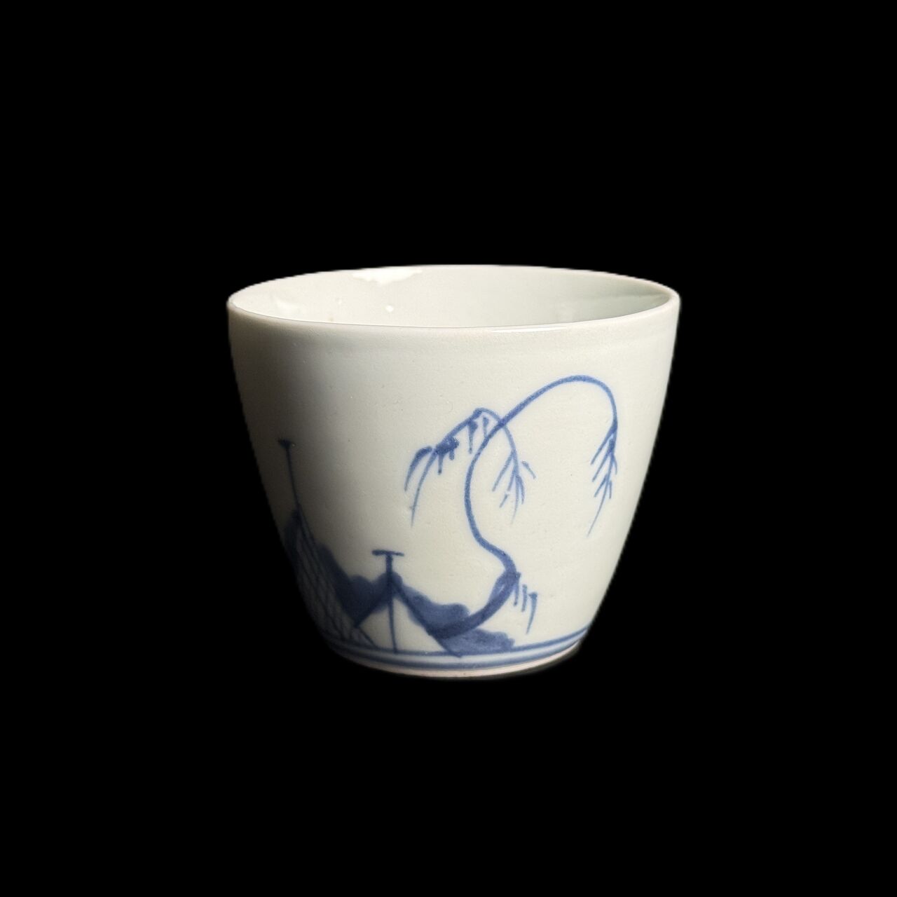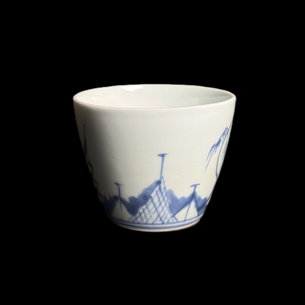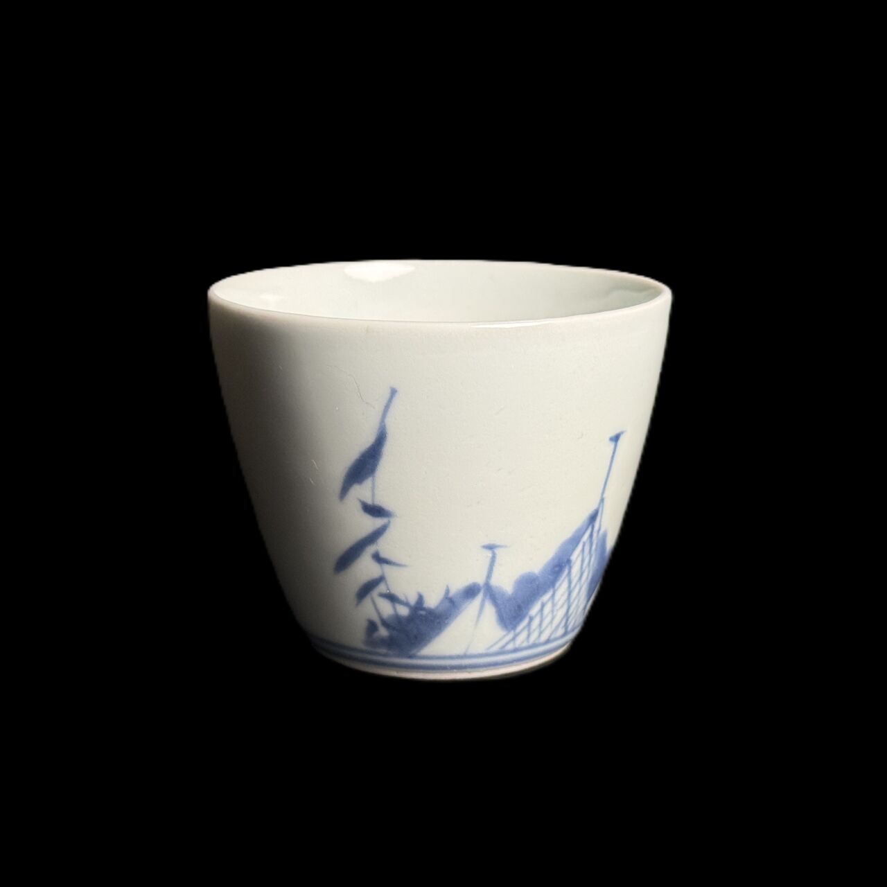 古伊万里 染付「網干・帆舟文」そば猪口