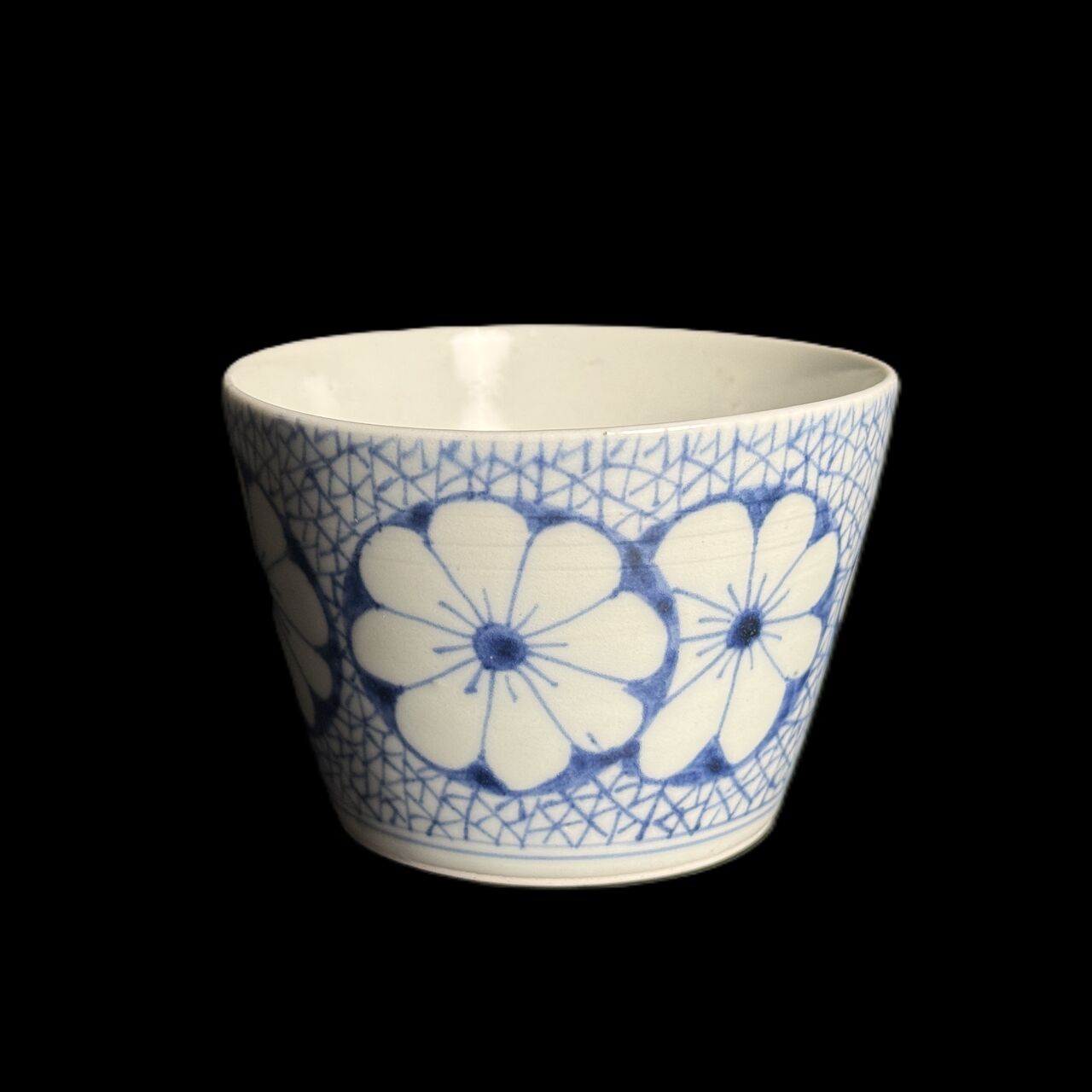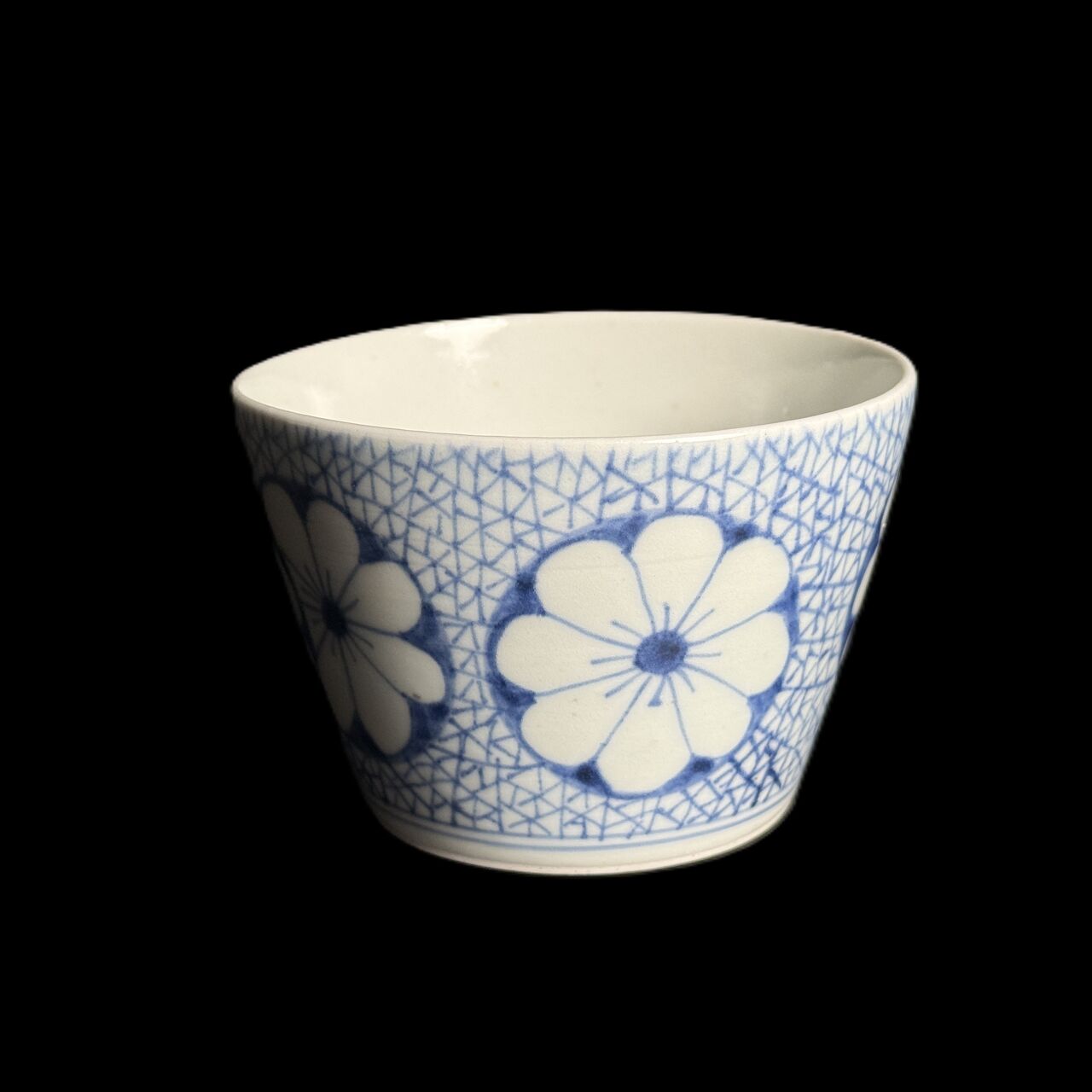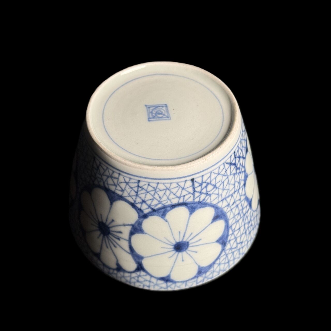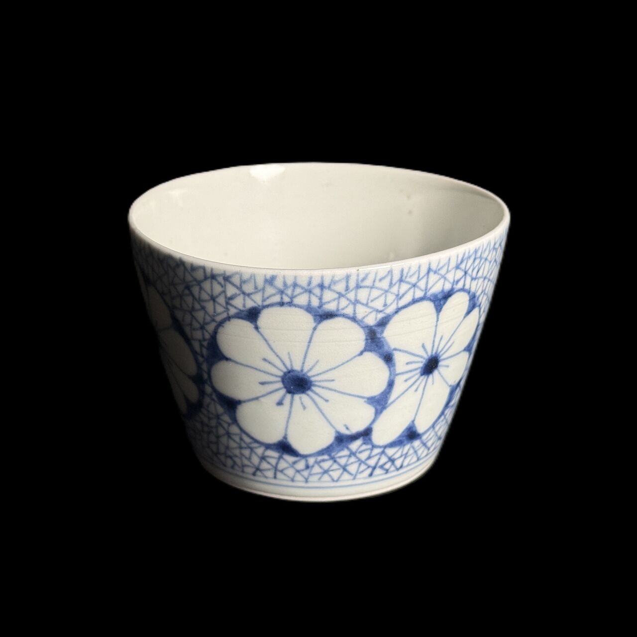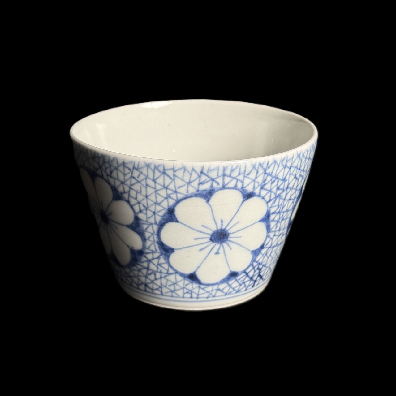 古伊万里 染付「氷裂・撫子文」そば猪口