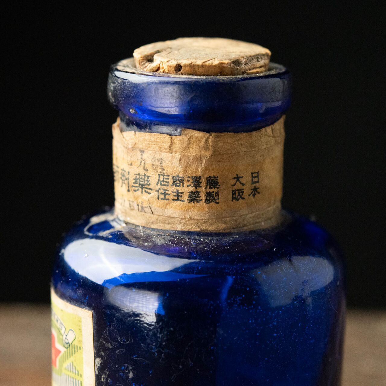 全体的にスレ、破けている個所、日焼けなどがあり、封をするときにつかったのか、蝋のようなものが付いている個所もあります。瓶の底に気泡割れのような箇所が1か所あります。