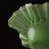 白いガラスのフチにピンクの吹雪文が施され、外側には緑のガラスが被せられて、フチは花形にしてある、凝った作りのガラスのコンポートです。